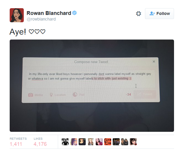 "In my life-only ever liked boys however I personally don't wanna label myself as straight gay or whateva so I am not gonna give myself labels to stick with- just existing : ),"I don't get it either. She only likes boys but wants to be known as queer? Can we be done with all of this yet? Please? I guess she's only 14 so she probably doesn't really know what she's saying, she's just stringing together words she might have heard somewhere once. And if we're going to be allowed to pick our own labels I'm a Jet Fighter Pilot Green Beret Fireman Superhero and I'd appreciate it if you were respectful I'm a little sensitive about it.
